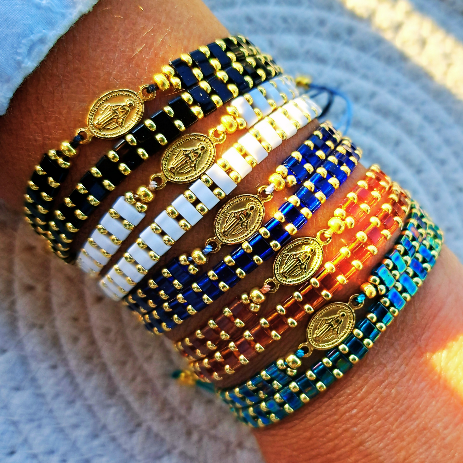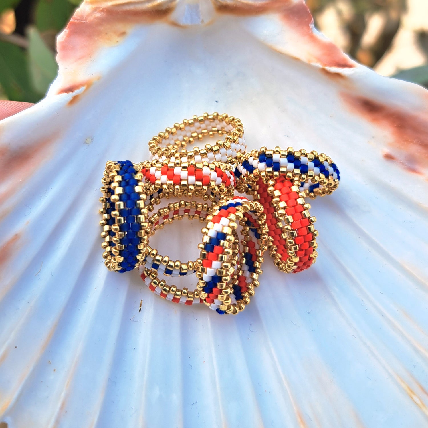 Des bagues tissées à la main avec des perles de verre Miyuki,...