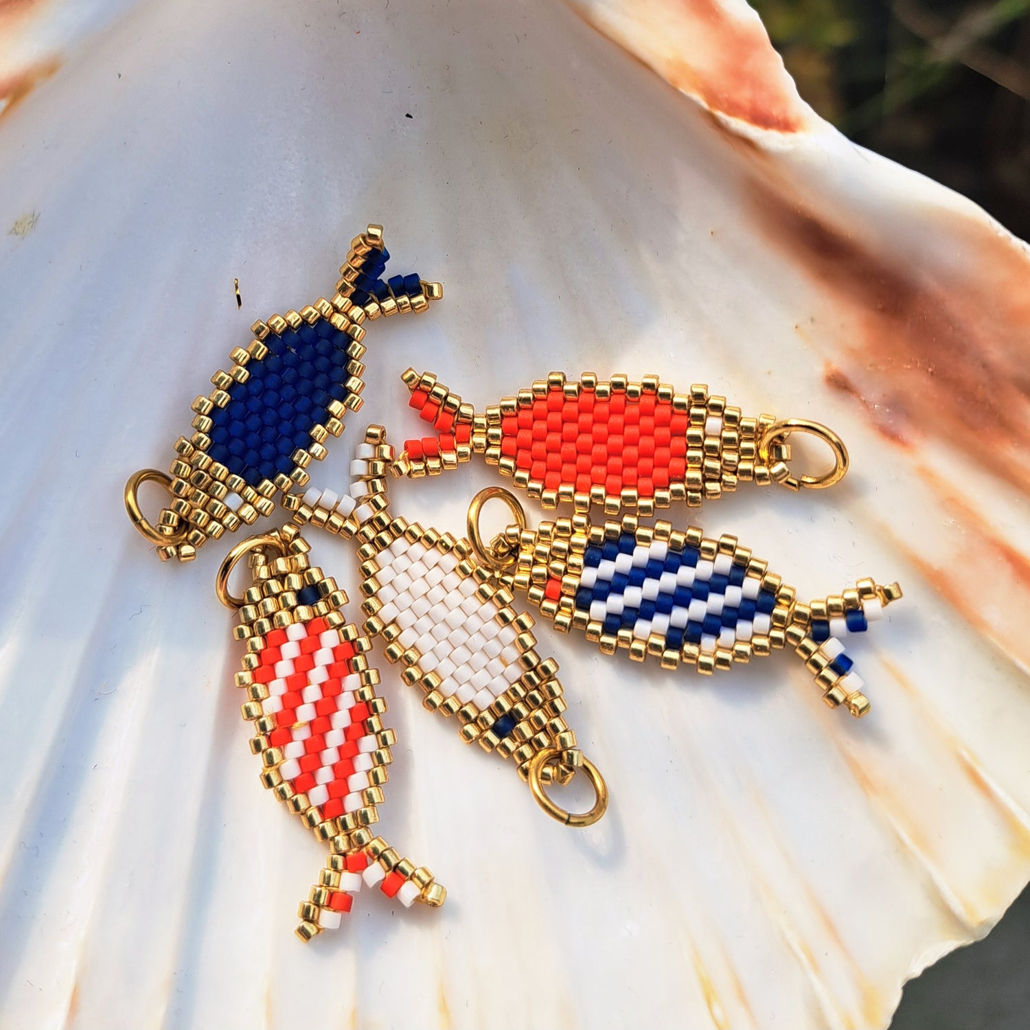 Des pendentifs faits main, inspirés par l’océan et la nature. Tissés perle...