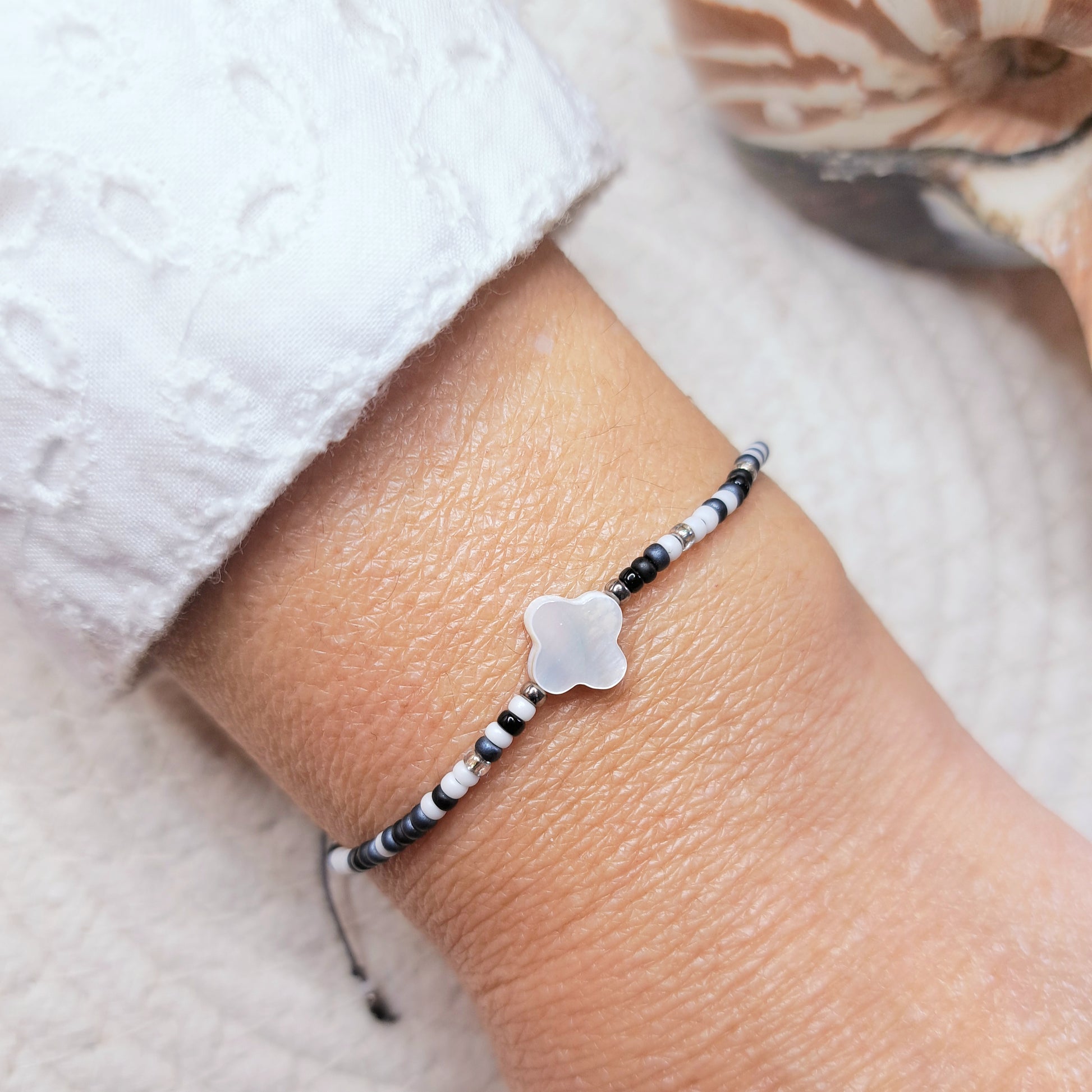 – Bracelet ajustable (de 15 à 23 cm env.) grâce à un nœud coulissant